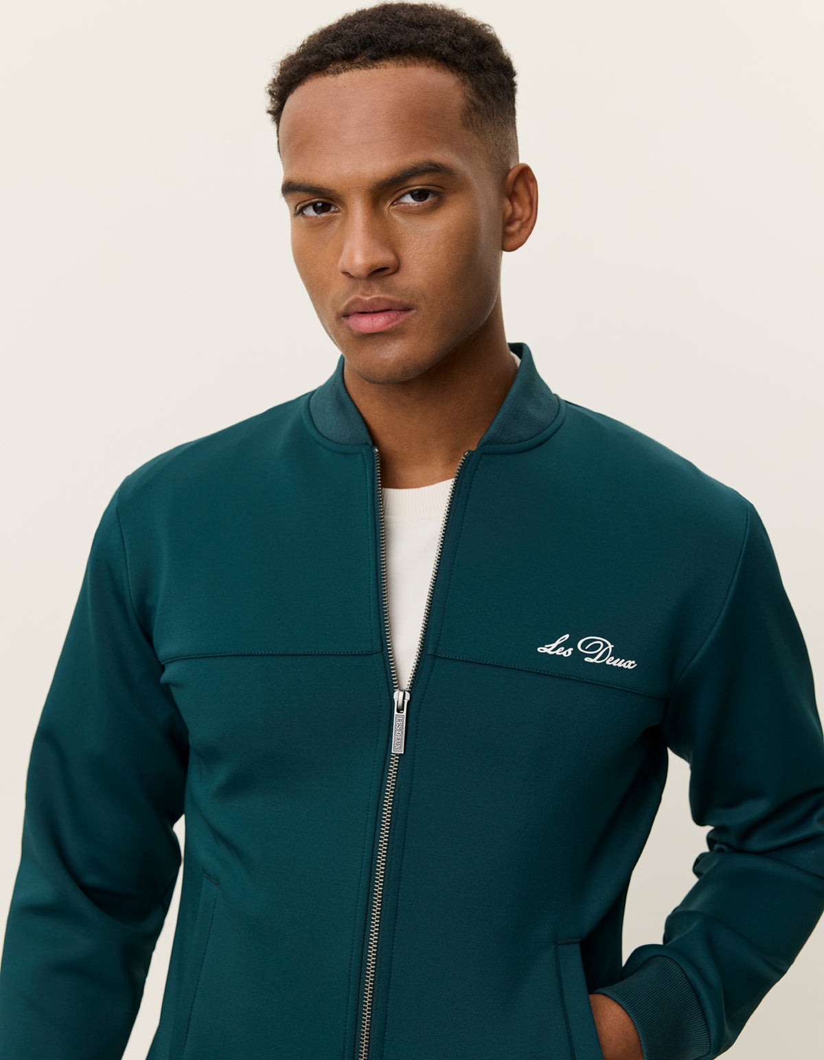 Go bold or go home. The Les Deux Ballier Crew Bomber in Sea Moss Green shatters expectations with recycled polyester that performs as hard as it looks. Technical stretch fabric moves with you while the catalina collar and contrast chest artwork refuse to whisper. Front zip closure means instant versatility, and welted pockets add sharp definition. Ribbed cuffs and hem lock in the silhouette. In sea moss green, this is the jacket that transforms casual into statement. Regular fit, maximum impact.