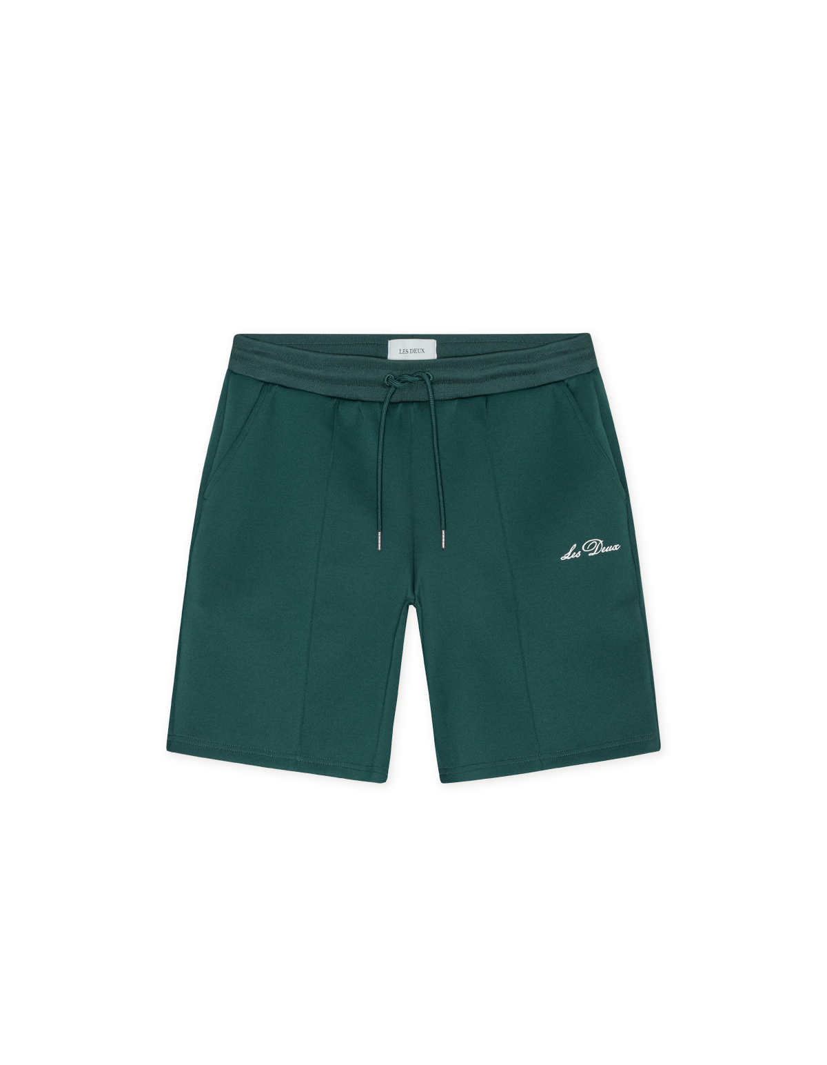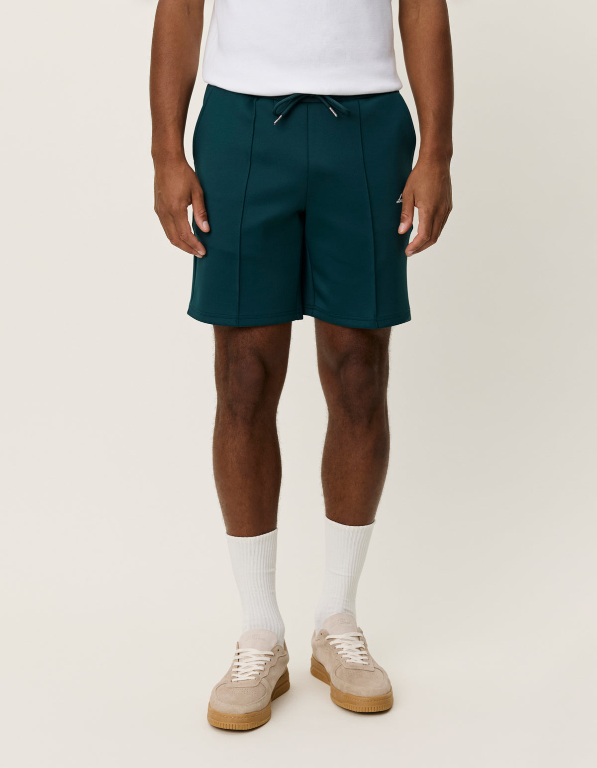 Short on compromise, long on attitude. The Les Deux Ballier Crew Track Shorts in Sea Moss Green punch above their weight made from recycled polyester that feels as good as it performs. Technical stretch fabric moves with you while stitched press folds deliver unexpected tailoring precision. Elastic drawstring waist and side pockets balance comfort with function, while contrast thigh artwork ensures you're never just another face in the crowd. In sea moss green, these shorts refuse to fade into the background. Regular fit, maximum swagger.