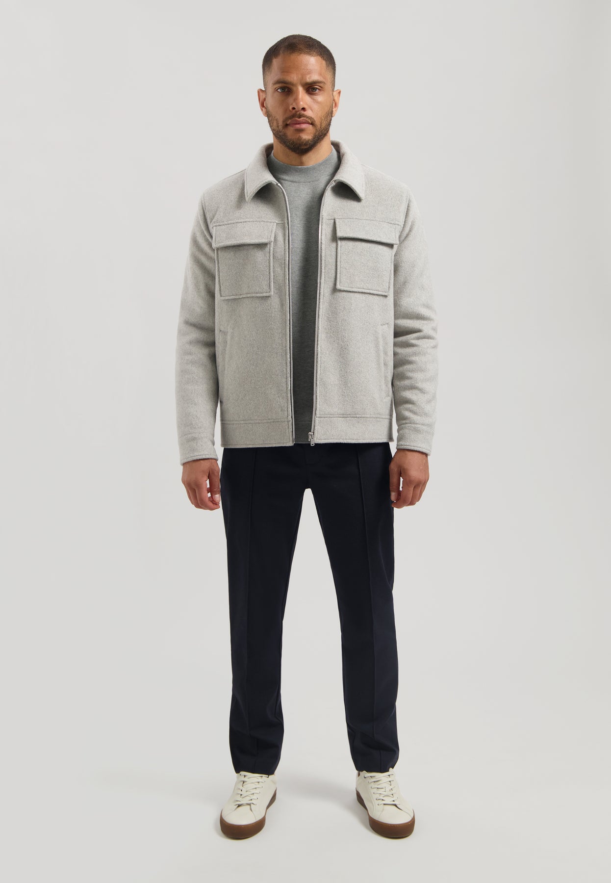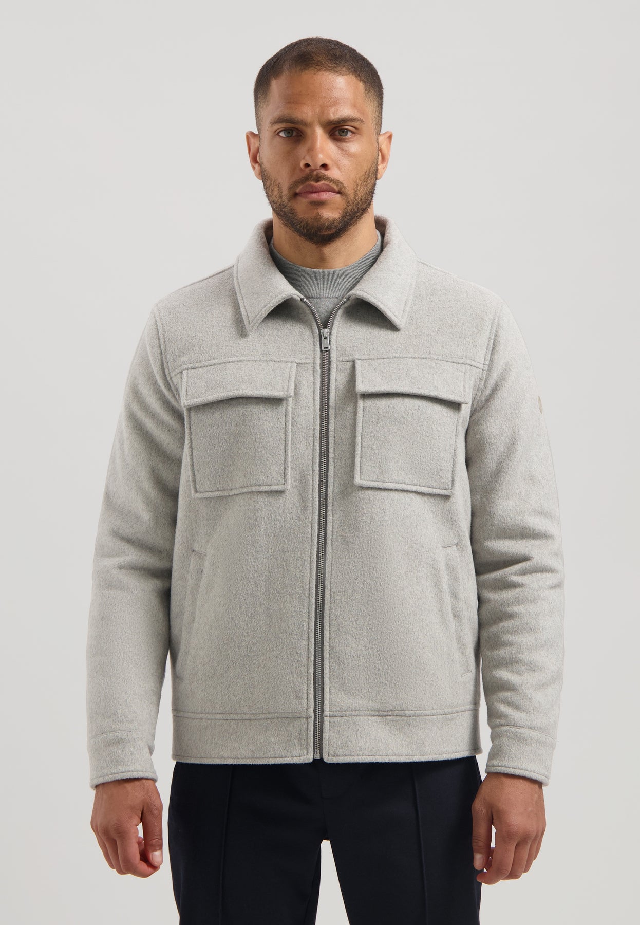 Introducing the Colton Jacket in Ghost Grey from Dstrezzed. Crafted from soft mélange wool fabric for a touch of luxury, this short jacket features sleek chest pockets for a contemporary and refined look. The padding is made from 100% recycled materials, ensuring you stay warm while being eco-friendly. Inside, you'll find Dstrezzed's signature octagon quilting, adding a distinctive touch to this modern essential.
