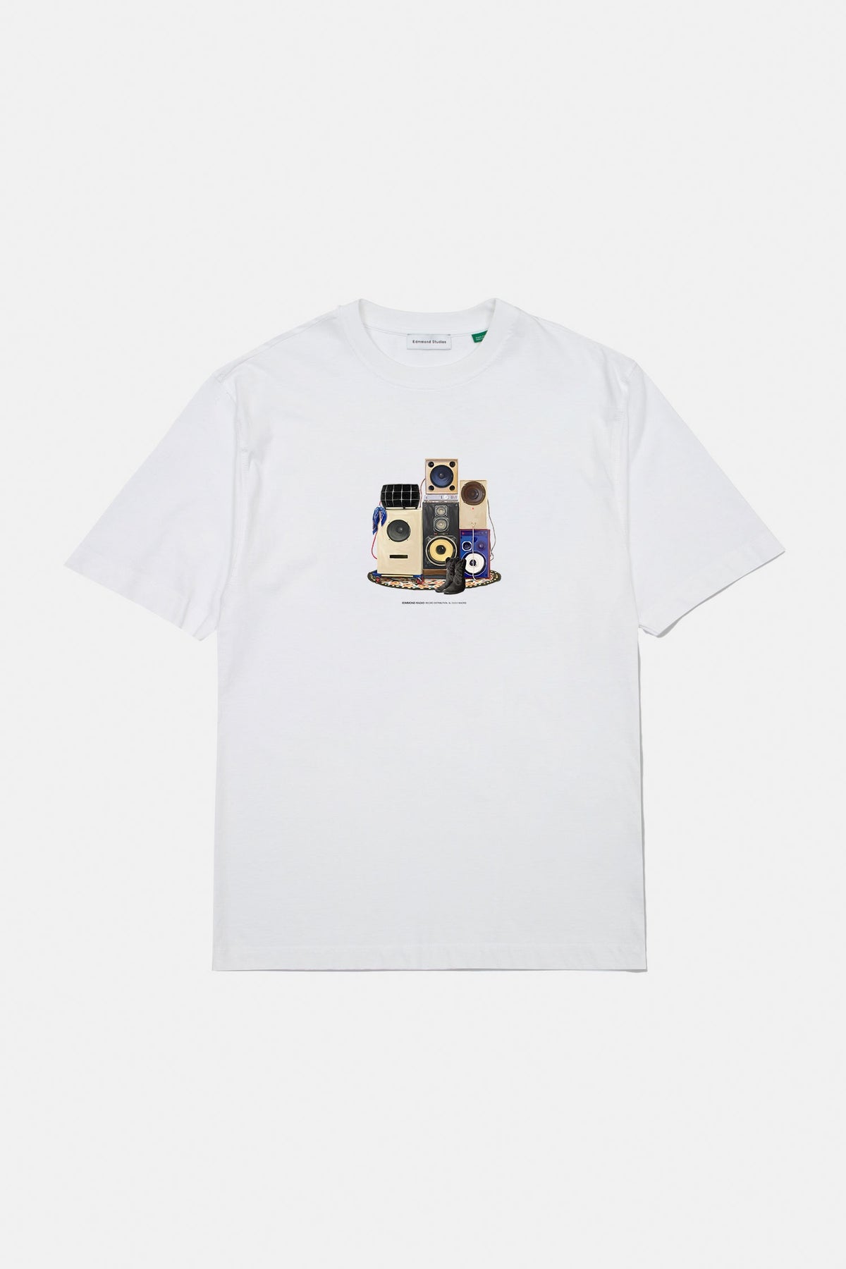 Clean, crisp, and ready to turn heads—this white crewneck features a striking Sound System print that speaks for itself. Made from 100% organic cotton in Portugal, it's the kind of tee that works with everything in your wardrobe while adding its own vibe. Soft enough to live in, durable enough to last, and graphic enough to make a quiet statement. Your new go-to for effortless style.
