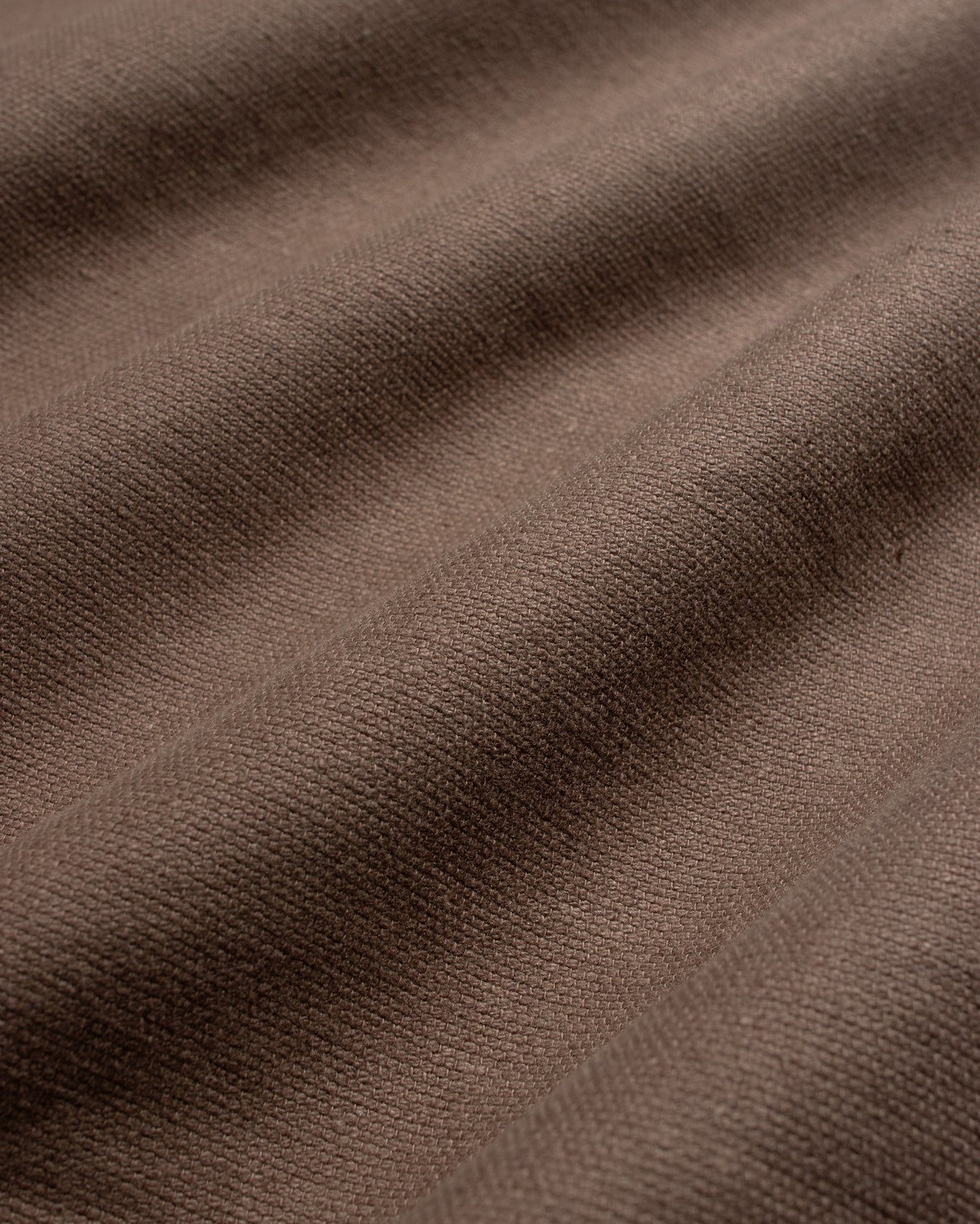 Far Afield's Normsk Jacket in brown is back and ready for action. Crafted from a breathable cotton-hemp canvas blend that only gets better with wear, this lightweight overshirt strikes the perfect balance between rugged durability and everyday comfort. Its clean lines nod subtly to military heritage, while sharp collar detailing and oversized chest pockets with hidden snap closures keep things looking sharp. Brown canvas.