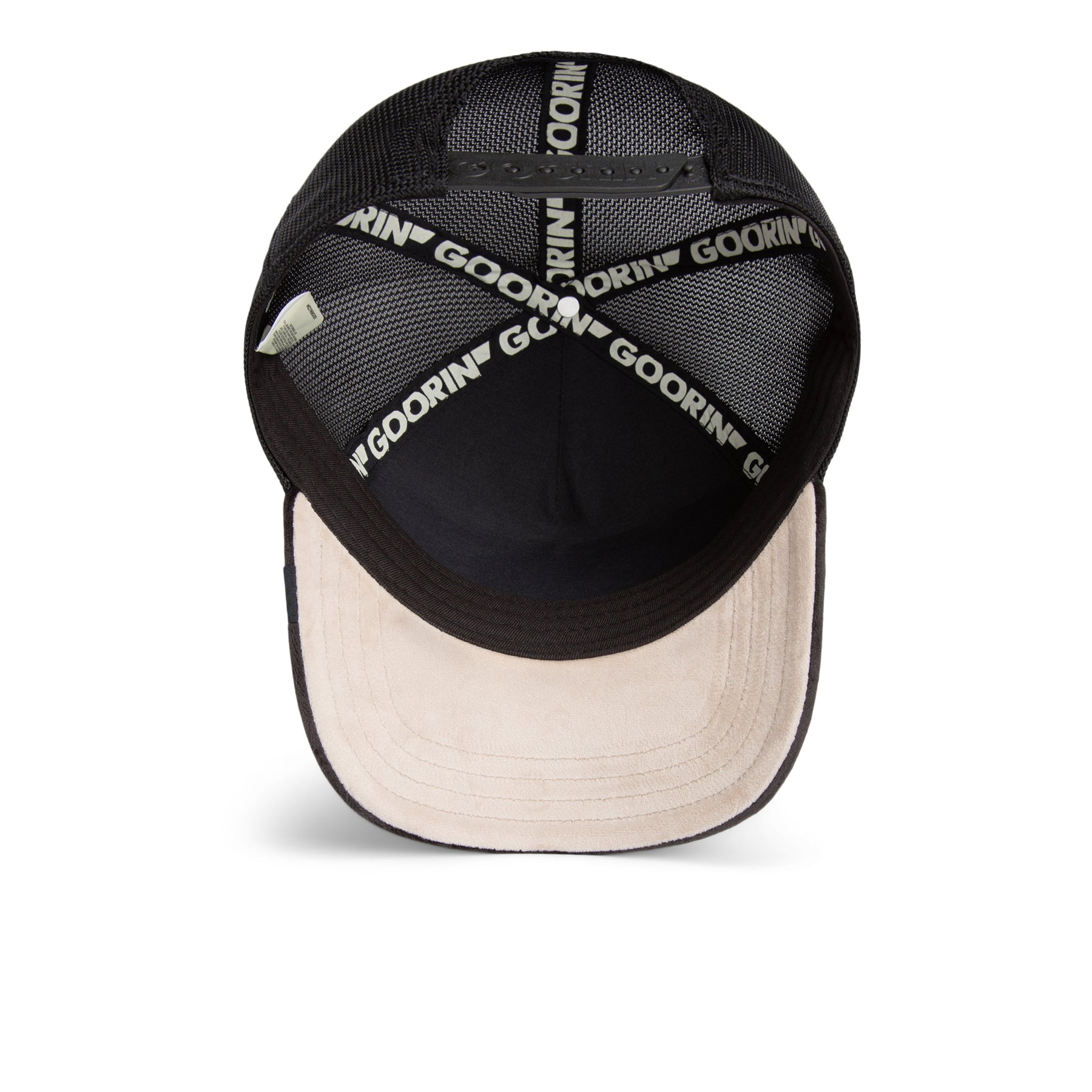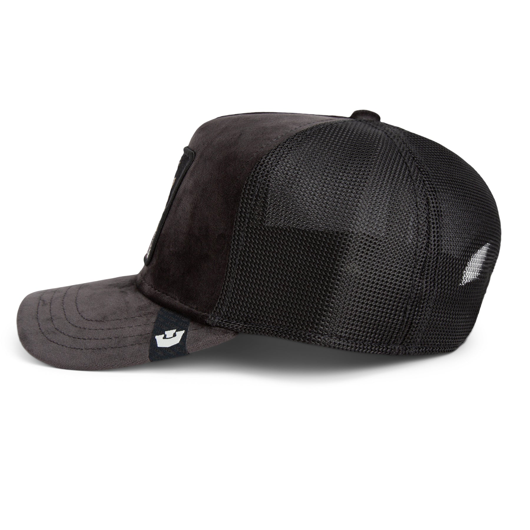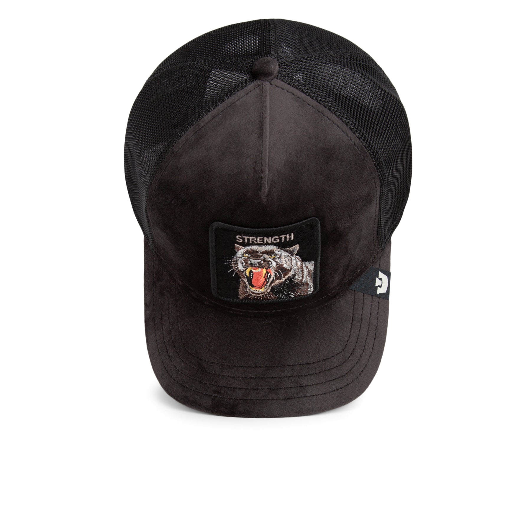 Forming part of the Goorin Farm Trucker Cap Velour Capsule - The Velour Panther Trucker Cap in Void.