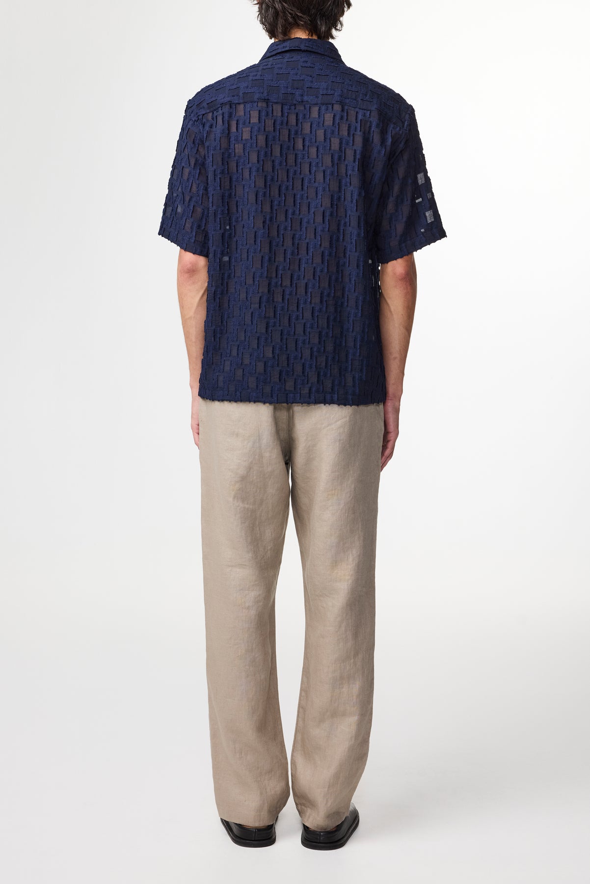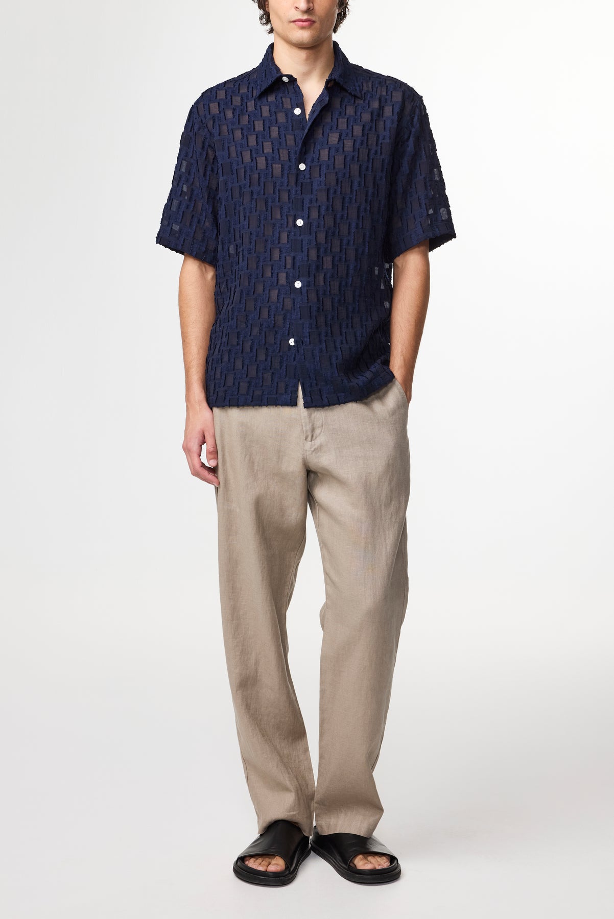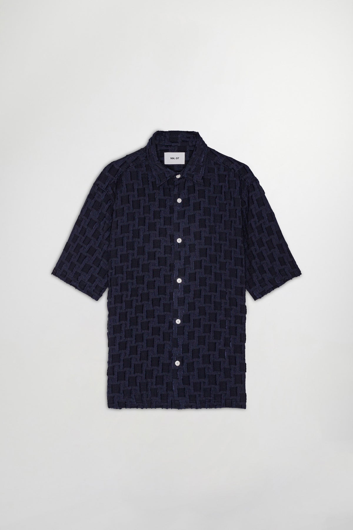 The Freddy SS NO PKT 5025 Shirt in Navy Blue from NN07 is shortsleeve Button-up, Relaxed-fit shirt made from a LENZING™ ECOVERO™ viscose fil coupé jaquard blend.