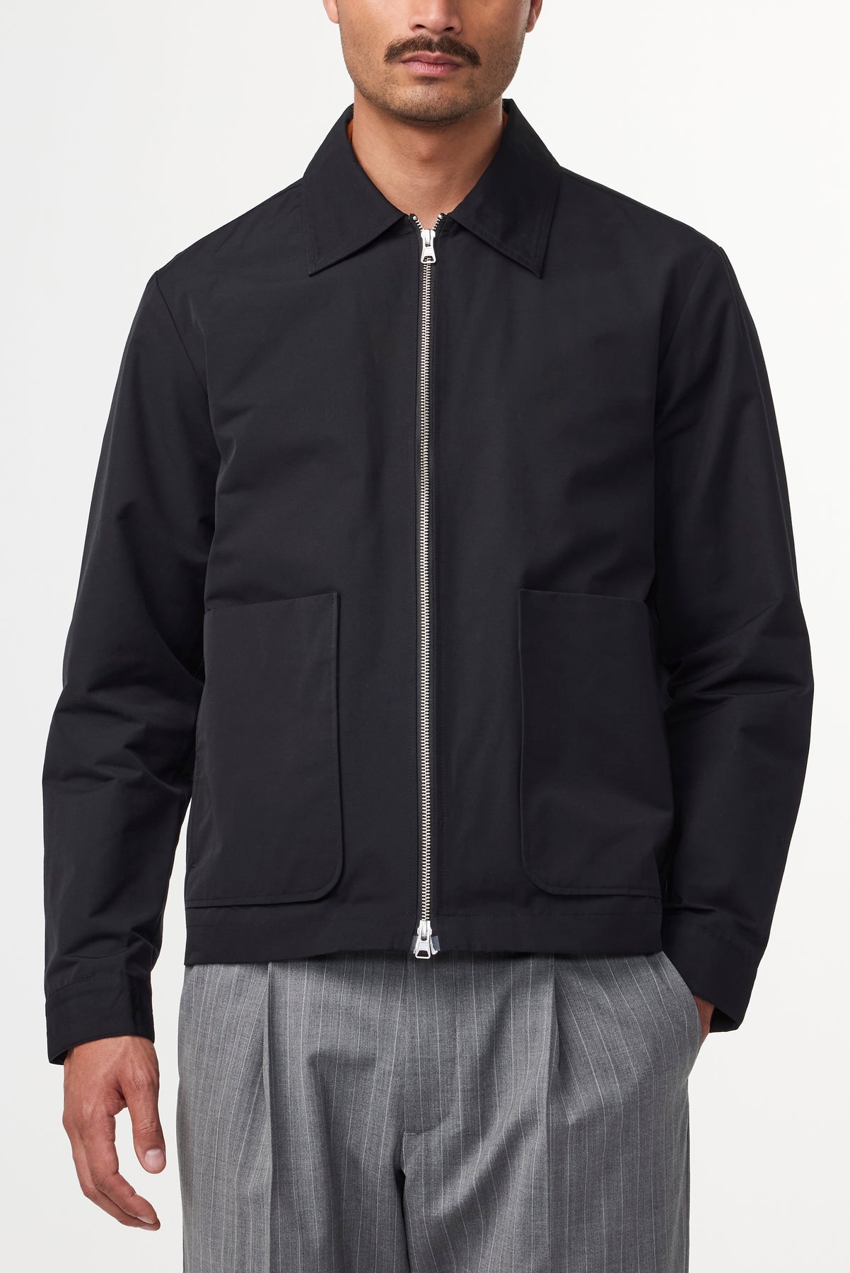 The NN07 Gael 8445 Jacket in Black is a short jacket crafted in a water-resistant Organic Cotton and recycled Polyester blend. Gael is inpsired by the fit and fabricationof an old-school stadium jacket.