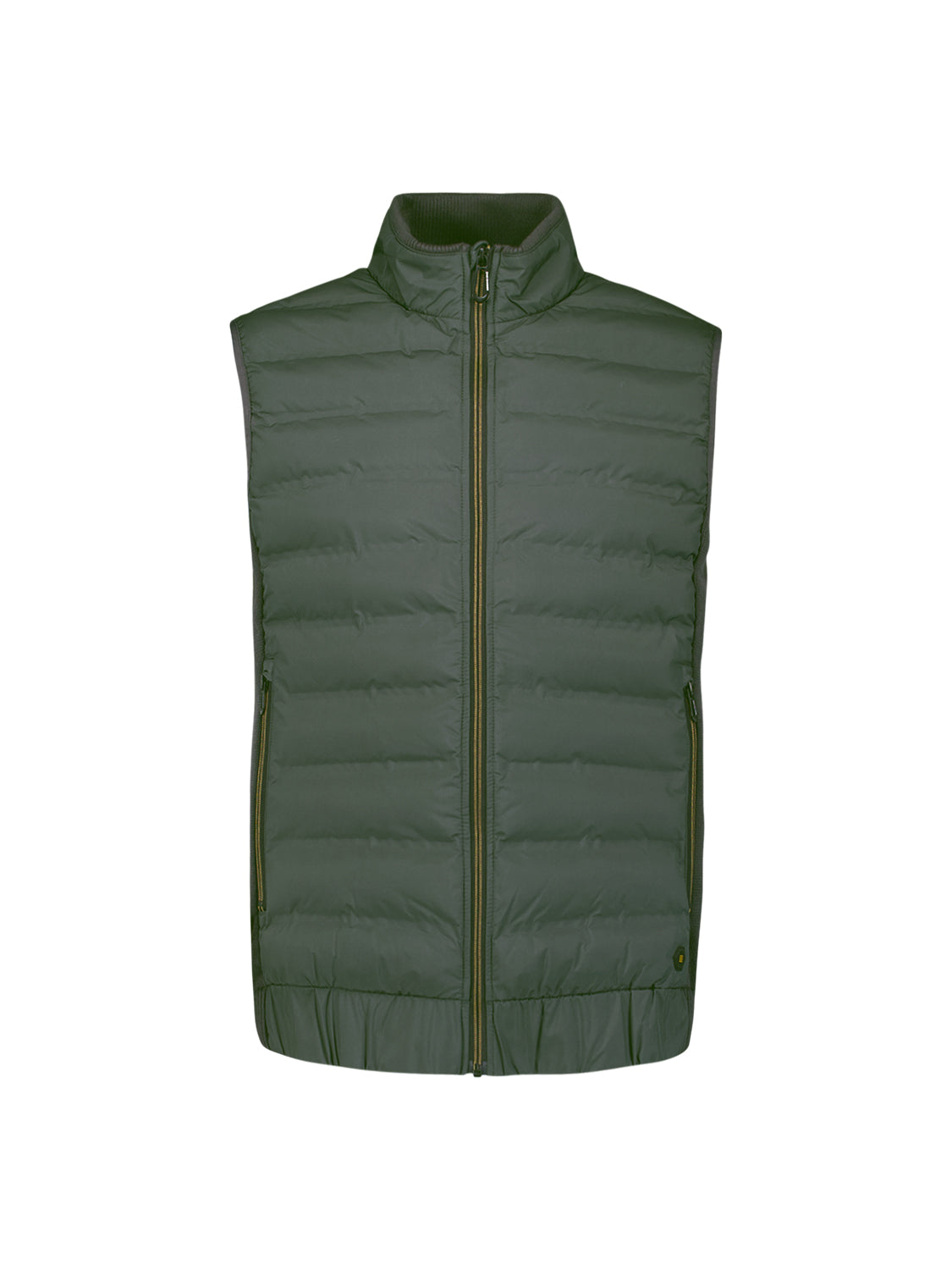 This padded bodywarmer with knitted side inserts offers comfort and flexibility.