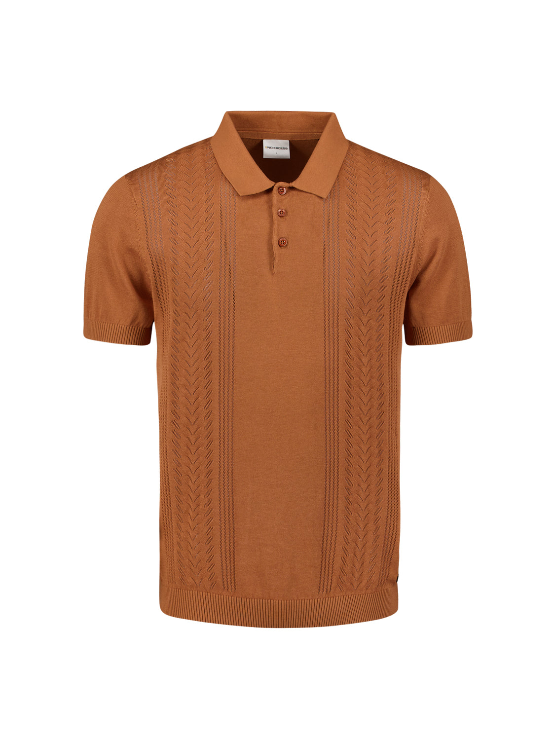 No Excess Short Sleeve Knitted Jacquard Polo in Caramel