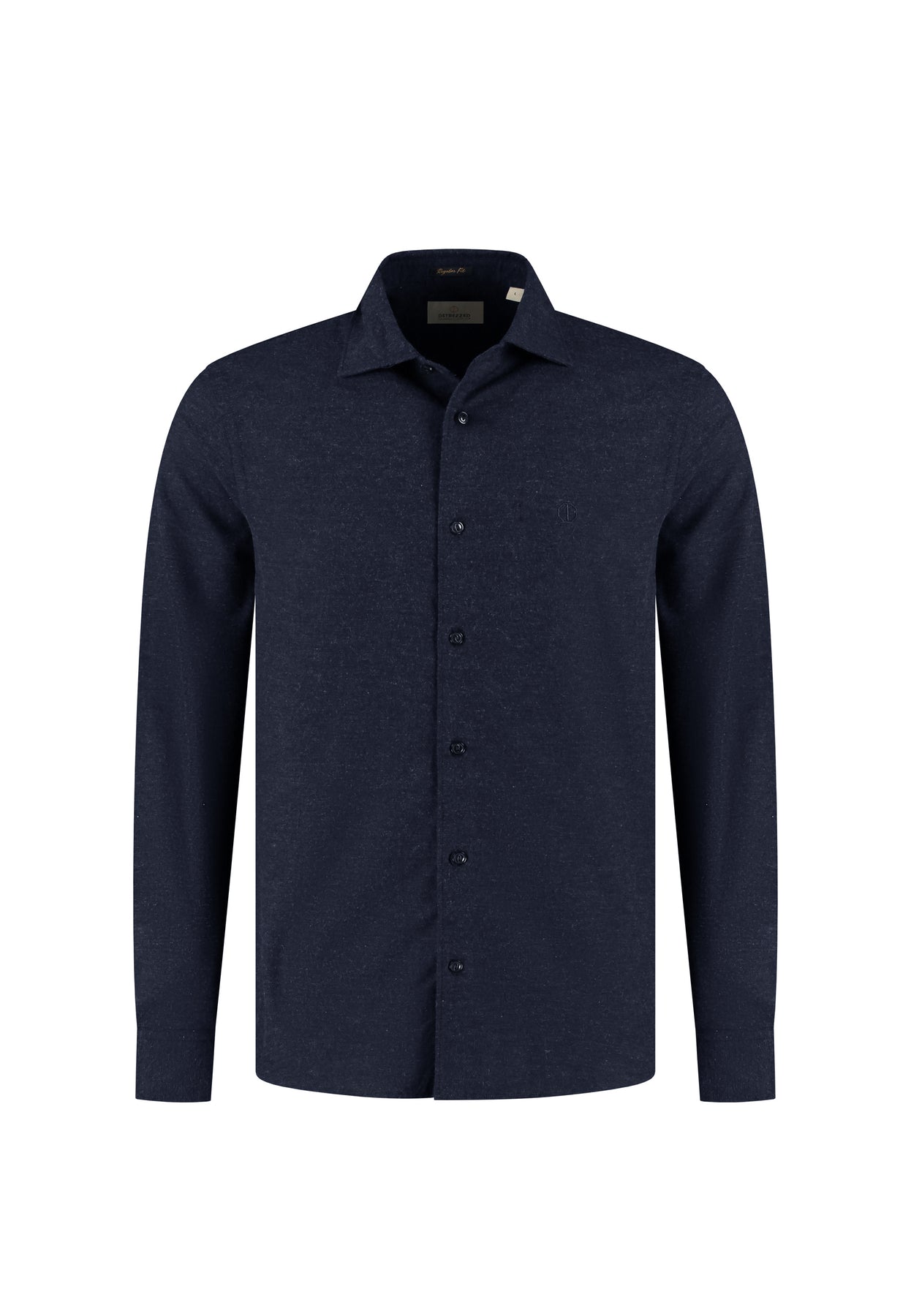 Check out the Olav flannel mélange dressy shirt in Dark Navy from DSTREZZED. With a spread collar and a soft, lightly brushed feel, the mélange fabric adds extra depth. Perfect for when you want to look sharp yet stay comfy.