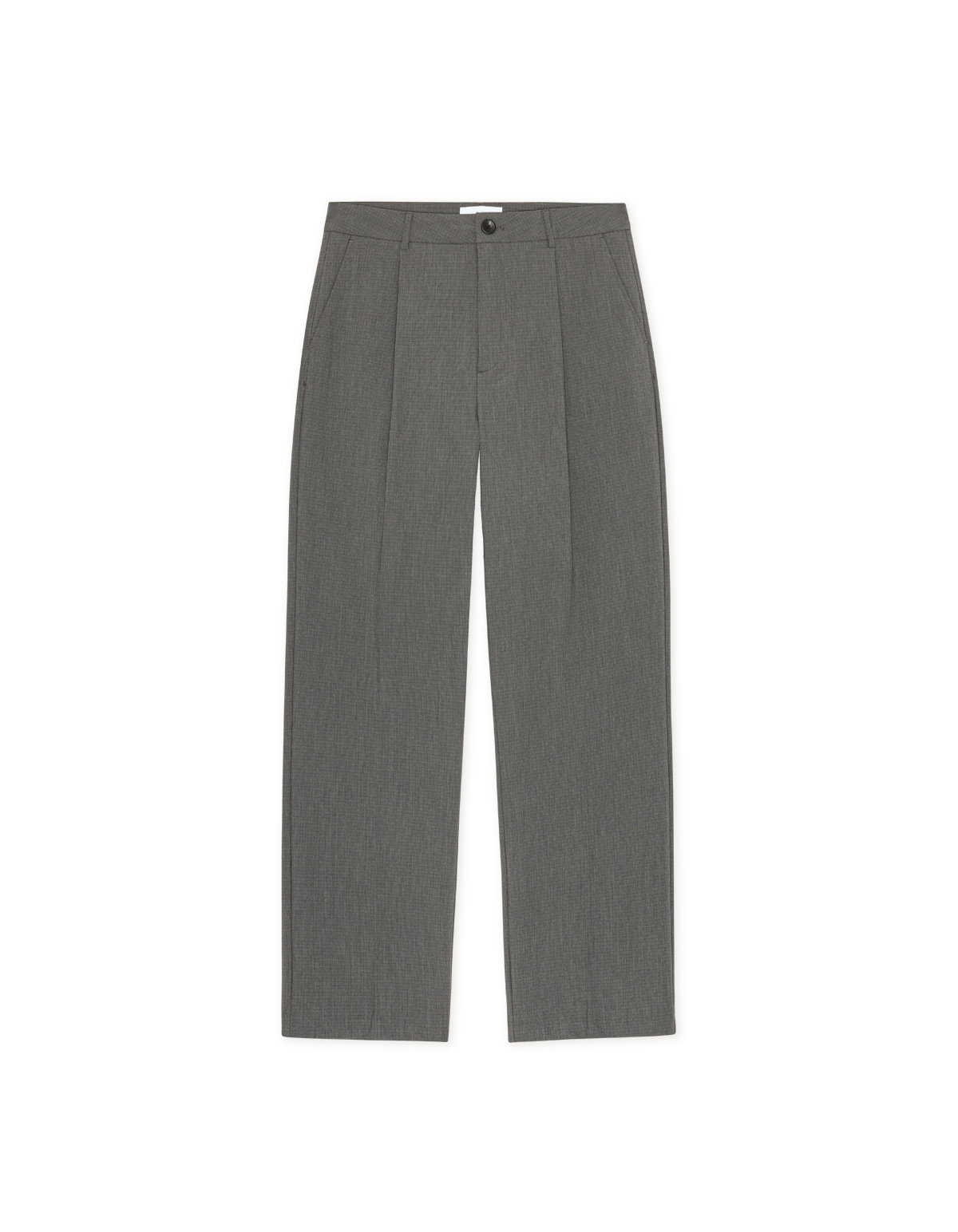 Tailored rebellion starts here. The Reece pants from Les Deux challenge the tyranny of skinny silhouettes with a loose fit that commands presence. Crafted in a soft, stretchable mini check fabric, they blend structure with movement—front pleats add architectural drama while the button and fly waist keeps things grounded. Side pockets and welt back pockets deliver function without fuss. In raven grey, this is the piece that proves refined doesn't mean predictable. Stretch fabric ensures all-day comfort without sacrificing edge.