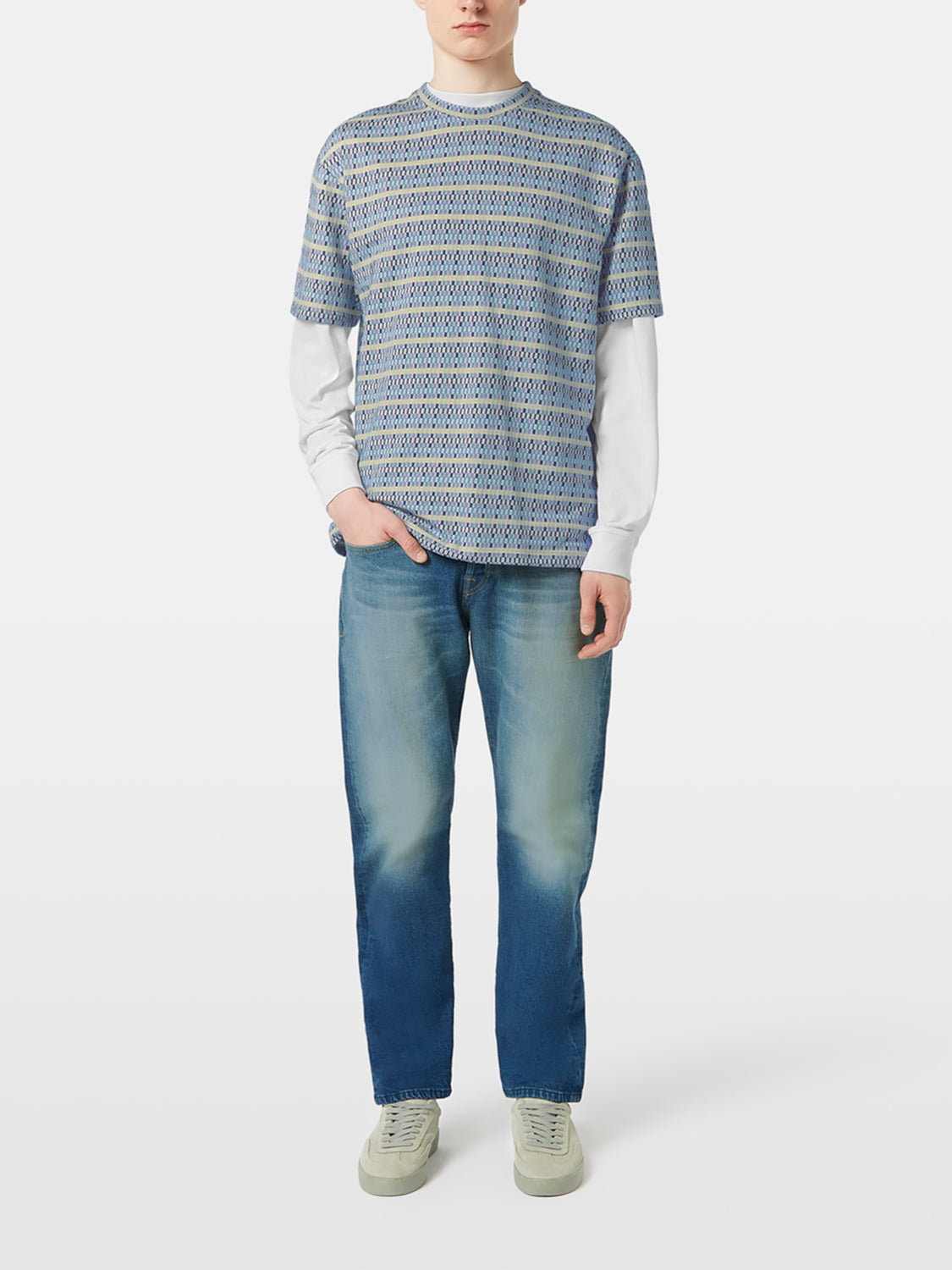 Blending comfort with subtle texture, this Scotch & Soda jacquard t-shirt in Multi Colour Beach Check offers a refined take on casual wear. The relaxed fit makes it an easy choice for laid-back styling.