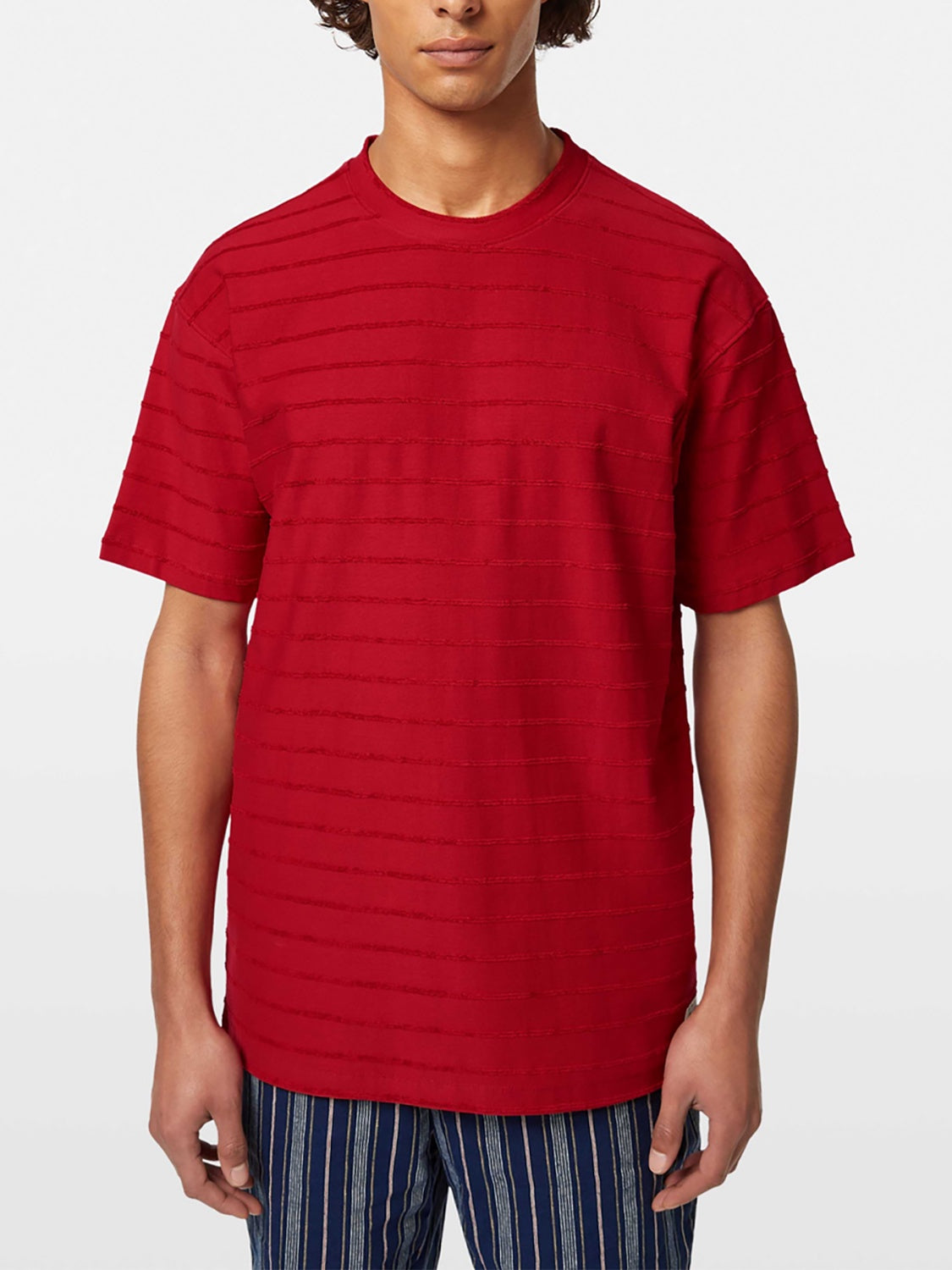 Scotch & Soda Relaxed Fit Towelling Stripe Tee in Roadside Red