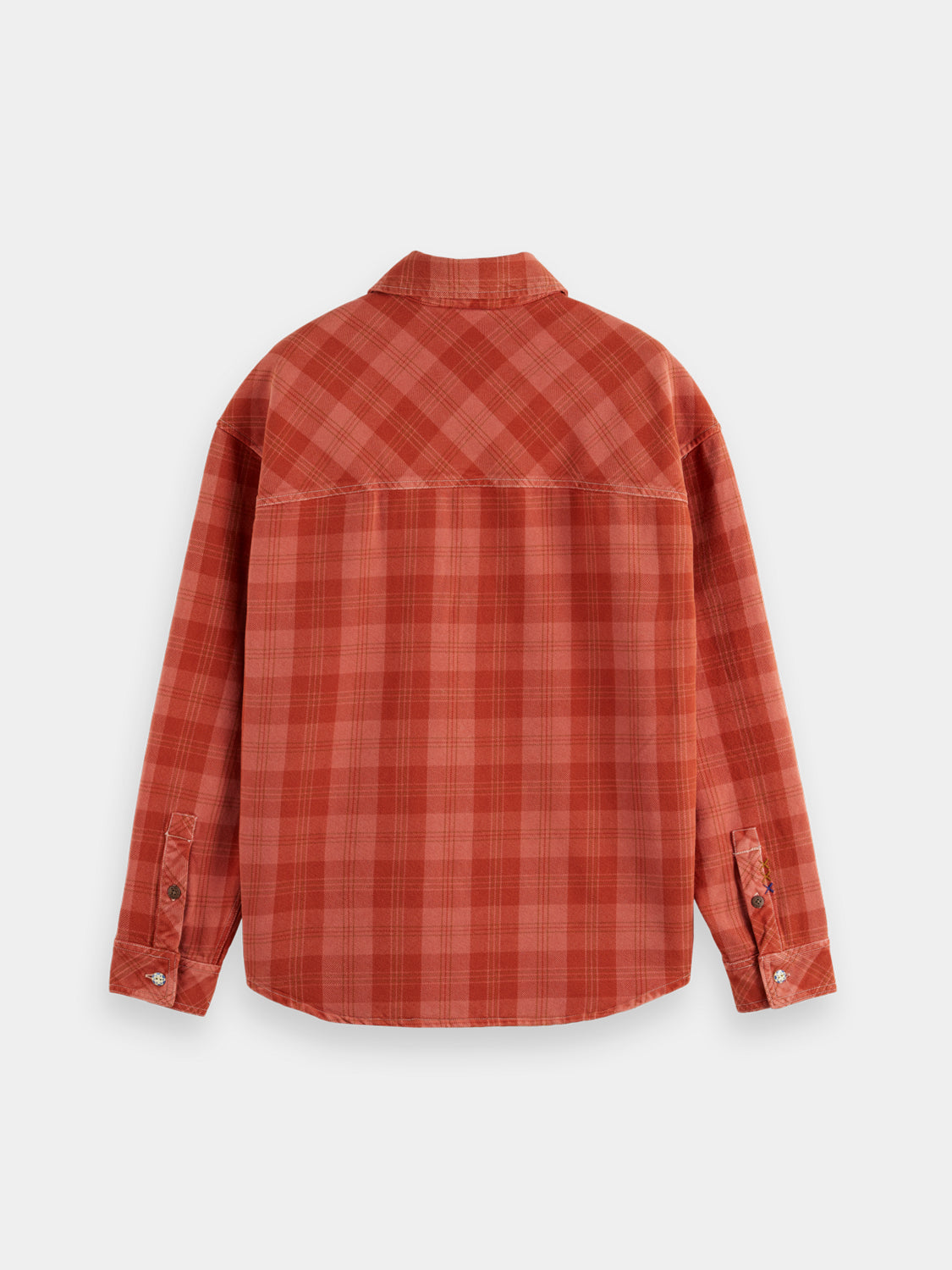 Scotch & Soda Washed Denim Checked Overshirt in Red Check